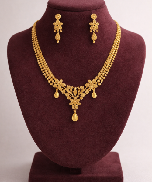১.৫ গ্রাম গোল্ড পলিশ করা এই প্রিমিয়াম জুয়েলারি স্বর্ণের দারুণ বিকল্প—লুক, শাইন আর ফিনিশিং এতটাই নিখুঁত যে চোখে দেখে বোঝার উপায় নেই এটা অরিজিনাল স্বর্ণ নয়।